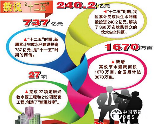 “十二五”時(shí)期,新疆累計(jì)完成水利建設(shè)投資737億元,是“十一五”時(shí)期的兩倍,水利工作取得重大成就。