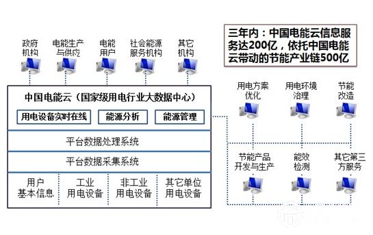 2013年1月份,“中國(guó)電能云平臺(tái)”已投入運(yùn)營(yíng),國(guó)家相關(guān)部門(mén)對(duì)中國(guó)電能云的建設(shè)和運(yùn)營(yíng)高度重視,在全國(guó)已形成了品牌優(yōu)勢(shì)。目前已匯聚來(lái)自北京、河北、江蘇、浙江、遼寧、安徽、湖北、廣西等省面向企業(yè)用戶的用電需求側(cè)管理公共服務(wù)平臺(tái)的電能使用數(shù)據(jù),和寧夏、深圳、蘇州、鎮(zhèn)江等地面向政府服務(wù)的區(qū)域?qū)S霉芾砥脚_(tái)的電能使用數(shù)據(jù)。