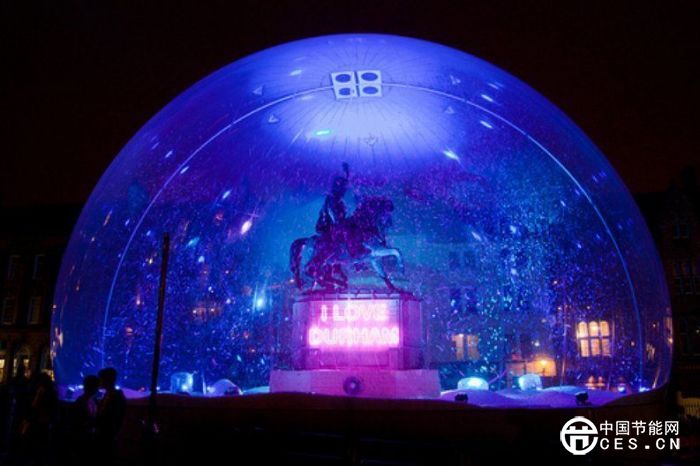 市中心廣場上的雕塑,變成了一個水晶球市中心廣場上的雕塑,變成了一個超大號水晶球