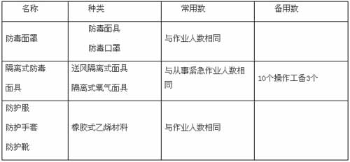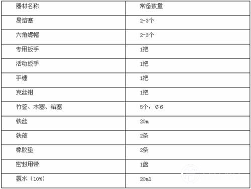 c、使用現(xiàn)場應(yīng)按下表配備搶修器材;