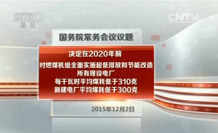 會議決定,在2020年前,對燃煤機(jī)組全面實(shí)施超低排放和節(jié)能改造,使所有現(xiàn)役電廠每千瓦時平均煤耗低于310克、新建電廠平均煤耗低于300克。