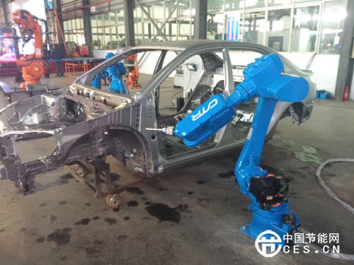 以“長(zhǎng)沙1號(hào)”為本體的“CTR長(zhǎng)泰機(jī)器人”在開展汽車車身弧焊作業(yè)