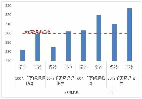 已有燃煤電廠尚且如此,新建機(jī)組又豈能放過(guò)。國(guó)務(wù)院常務(wù)會(huì)議又說(shuō),新建電廠平均煤耗低于300克,比現(xiàn)有電廠少了10克。新建機(jī)組里面,也就只有100萬(wàn)千瓦級(jí)超超臨界機(jī)組和60萬(wàn)千瓦級(jí)超超臨界濕冷機(jī)組能夠低于這條煤耗紅線,怎一個(gè)慘字了得!