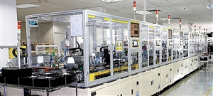 欣旺達自主開發(fā)的全自動鋰離子電池PACK生產線。