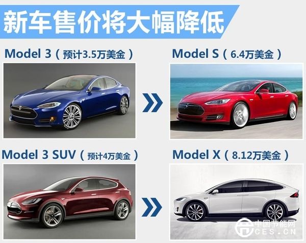 美國(guó)高端電動(dòng)車制造商特斯拉自推出Model S車型后,即將推出首款SUV——Model X,已初步完成電動(dòng)轎車、SUV的產(chǎn)品布局。日前,從特斯拉官方獲悉:明年特斯拉將推出入門級(jí)車型Model 3,售價(jià)相比現(xiàn)款Model S車型大幅降低。此外,特斯拉還規(guī)劃基于Model 3衍生的SUV車型,售價(jià)也要遠(yuǎn)低于Model X。