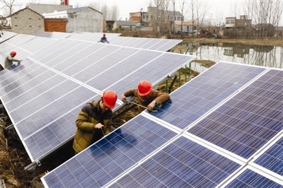 12月1日,施工技術(shù)人員在張橋鎮(zhèn)管李村安裝村級扶貧光伏電站。