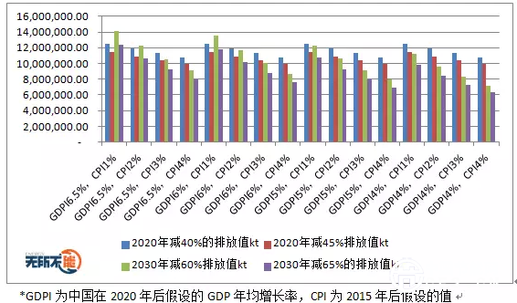 在十三五規(guī)劃文件中,已經(jīng)確定2016年到2020年平均GDP增長速度為6.5%, 從而確定了2020年名義GDP。因此,影響2020年實(shí)際GDP(2005年基礎(chǔ)上)從而影響碳排放總量的因子只有CPI。