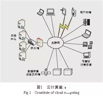 廣義上來說,云計(jì)算平臺就是云控中心與計(jì)算平臺相互獨(dú)立的同時(shí)而又互相協(xié)作的實(shí)體。云控中心依據(jù)用戶發(fā)送來的請求,為各個(gè)計(jì)算節(jié)點(diǎn)動(dòng)態(tài)分配用戶任務(wù),參與任務(wù)的計(jì)算節(jié)點(diǎn)將各自任務(wù)完成后的結(jié)果集中到控制中心,控制中心最后匯總結(jié)果給用戶。對于云存取請求,云控中心將用戶數(shù)據(jù)通過互聯(lián)網(wǎng)分布式存儲(chǔ)在云端或者從云端讀取。在虛擬化技術(shù)的支撐下,云計(jì)算及云存儲(chǔ)服務(wù)對用戶而言都是透明的。類似于通信系統(tǒng)中的時(shí)分復(fù)用,每個(gè)用戶看起來鏈路上的設(shè)備是自己獨(dú)享的,云計(jì)算用戶眼中的云服務(wù)也是獨(dú)享的。同時(shí),云計(jì)算平臺應(yīng)為用戶提供多種終端接入方式,如智能手機(jī)、平板電腦、個(gè)人電腦等。云計(jì)算組成見圖1。