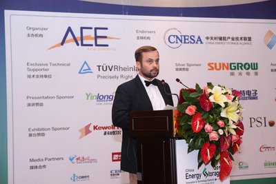 TUV萊茵深圳公司電子電氣產(chǎn)品服務(wù)部周邊設(shè)備經(jīng)理Clemens Padel先生在中國(guó)儲(chǔ)能與技術(shù)峰會(huì)上發(fā)言