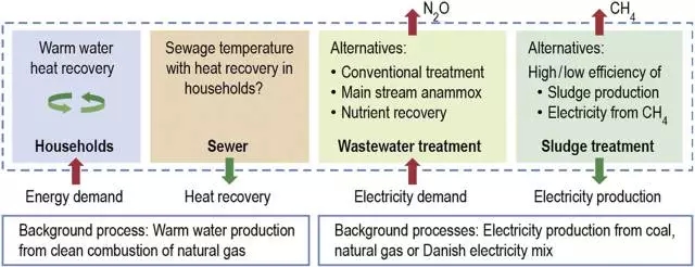 Larsen T. A等人還計算了三種不同污水處理工藝的碳排放情況。