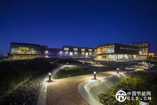 回用的中水會回流到這些濕地,來研究回用水對天然濕地的影響,例如在這個污水廠地址東邊的Ormond海灘濕地。另外這些中水會用于灌溉可食用糧食的農田、城市公園和高爾夫球場等。這些中水也會被注射進地下水盆地以組織海水入侵(就這一點,小編有幸親自聽過污水處理泰斗Perry McCarty就這個因為氣候變換帶來的環(huán)境問題作的報告,有時間大家可以去www.wwtpconcept.cn這個網站進行瀏覽)。另外項目的其他可持續(xù)設計的元素包括了光伏板的利用作為可再生能源,自動化的被動式冷卻系統(tǒng)、配以自動光照控制的充足的自然光照系統(tǒng)、低用水量和使用本地植物材料等。