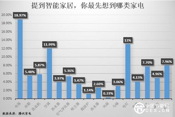 另外,根據(jù)騰訊家電在2014年12月份的調(diào)查,“提到智能家居,你最先想到哪類(lèi)家電”,除了電視機(jī)外,選擇電燈的調(diào)查人群占第二位。