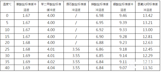 2.1.2.7各標(biāo)準(zhǔn)緩沖溶液的PH值見表1。