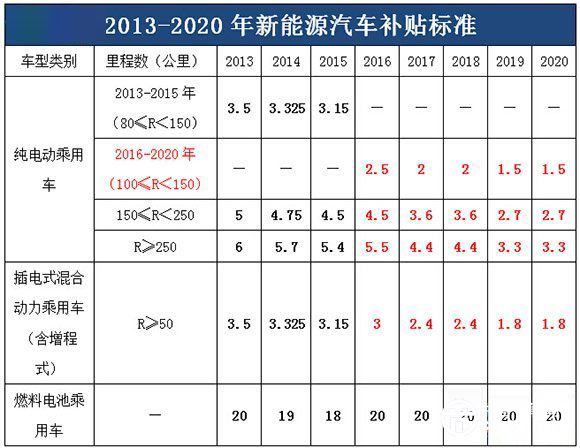 從到2020年的補(bǔ)貼規(guī)劃來看,未來的補(bǔ)貼金額將會(huì)是逐漸減少肯定是板上釘釘子的事了。而剛剛公布的2016年補(bǔ)貼標(biāo)準(zhǔn),也證實(shí)了新能源政策延續(xù)了下降補(bǔ)貼額度的方案。在工信部發(fā)布的《關(guān)于2016-2020年新能源汽車推廣應(yīng)用 財(cái)政支持政策的通知》2016年新能源乘用車補(bǔ)貼金額為2.50-20.00萬元(按照行駛里程劃分),其中跟普通消費(fèi)者相關(guān)的補(bǔ)貼范圍為2.50-5.50萬。