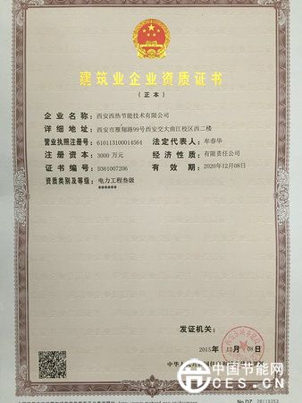 近日,西安市城鄉(xiāng)建設(shè)委員會向西安西熱節(jié)能技術(shù)有限公司頒發(fā)了“建筑業(yè)企業(yè)資質(zhì)證書—電力工程三級”。該項資質(zhì)的取得對公司的產(chǎn)業(yè)化發(fā)展具有重要而深遠(yuǎn)的意義。公司后續(xù)將通過承接燃煤發(fā)電機(jī)組節(jié)能一體化改造等工程項目,提升資質(zhì)等級,打造行業(yè)品牌。