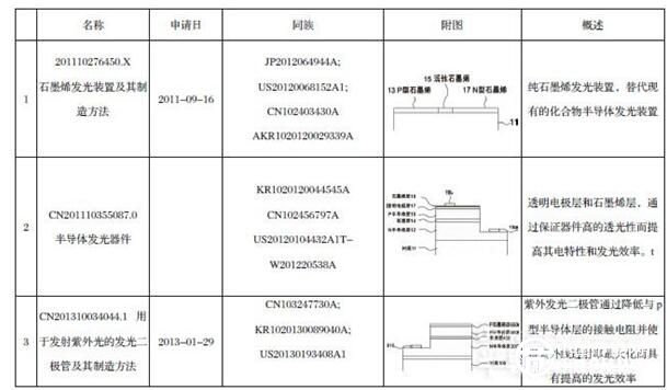 1)顛覆型:以專利1為代表,以石墨烯材料取代目前的半導(dǎo)體化合物發(fā)光;即利用另一種途徑達(dá)到相同的目的,顛覆了之前的做法。