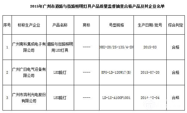 12月15日,廣州市質(zhì)量技術(shù)監(jiān)督局在其官網(wǎng)公布2015年廣州市道路與街路照明燈具產(chǎn)品質(zhì)量監(jiān)督抽查結(jié)果,共抽查了3家企業(yè)生產(chǎn)的3批次產(chǎn)品,經(jīng)檢驗(yàn)全部符合標(biāo)準(zhǔn)要求。