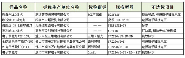 11月23日,湖南省工商行政管理局在其官網(wǎng)發(fā)布的《2015年三季度流通領(lǐng)域商品質(zhì)量抽查檢驗(yàn)通報(bào)》顯示,20組節(jié)能燈樣品不合格。
