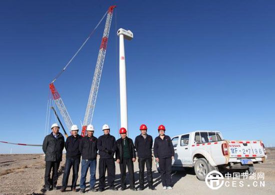 12月16日早,大唐新能源甘肅公司瓜州北大橋項目部和施工單位七名工程技術(shù)人員,在該項目最后一臺風機葉片吊裝之前合影留念。