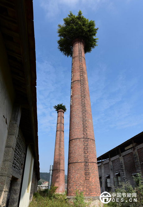 幾十米高的煙囪頂上竟然長(zhǎng)出了茂盛的榕樹。
