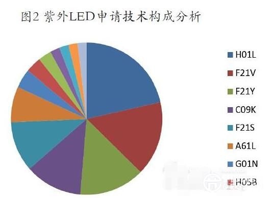 涉及紫外LED的申請主要包括兩大類,一類申請涉及紫外LED芯片,包括芯片的制備及封裝;一類涉及紫外LED的各種應(yīng)用形式申請。