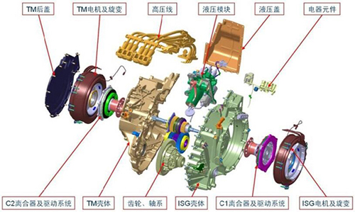 (3)、全部采用干式離合器,免維護(hù),無拖曳損失,常閉離合器鏈接TM電機(jī),常開離合器連接ISG電機(jī)和發(fā)動(dòng)機(jī)。而電機(jī)是具有良好制造,裝配工藝性的高性能、高質(zhì)量永磁同步電機(jī)。