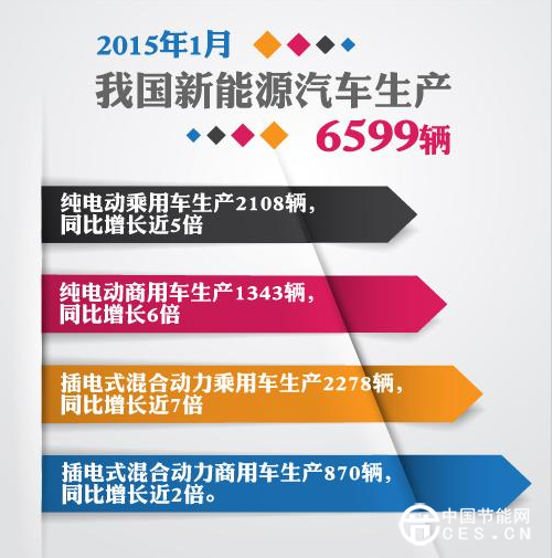 根據(jù)機(jī)動(dòng)車整車出廠合格證統(tǒng)計(jì),2015年1月,我國新能源汽車生產(chǎn)6599輛,同比增長近5倍。