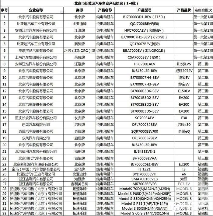 截止小編發(fā)稿,根據(jù)公開資料,北京目前共頒布四批“示范應(yīng)用新能源小客車生產(chǎn)企業(yè)及產(chǎn)品備案信息”。進(jìn)入上述備案的車型,均可在京享受牌照、補(bǔ)貼等優(yōu)惠政策。