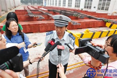 昨日,環(huán)保人員在被查處的露天刷漆場接受采訪
