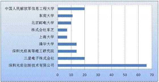除此之外,我國(guó)專利申請(qǐng)數(shù)目較多的申請(qǐng)人,均為高校和研究機(jī)構(gòu);信息工程大學(xué)、清華大學(xué)、東南大學(xué)、北京郵電大學(xué)等,均在可見光通信領(lǐng)域有少量的布局,也有來自各大高校的實(shí)驗(yàn)室的獨(dú)立申請(qǐng);另外復(fù)旦大學(xué)、上海交通大學(xué)等,在傳統(tǒng)光通信研發(fā)的基礎(chǔ)上,可見光通信的研究也取得了一定的成果。