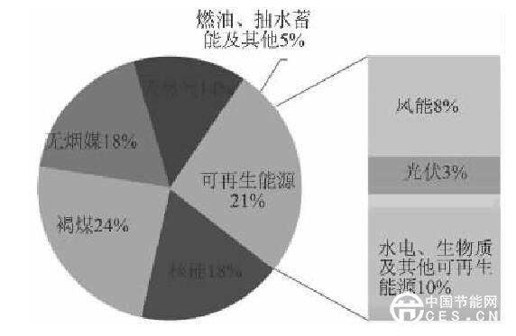 圖2 2011年德國各電力能源發(fā)電總量占比