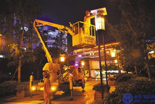 近日,重慶梁平縣市政工人在晚上更換路燈燈泡。以前,該縣路燈檢修一般都在白天,檢修時(shí)同一線路上的燈都要開著試燈,浪費(fèi)了不少電,有的居民不理解,還曾經(jīng)打電話投訴。從今年3月起,重慶梁平縣市政園林局聽取群眾意見,不但完成了城區(qū)部分道路路燈節(jié)能改造,把人流量和車流量較少路段的“長明燈”改為“半夜燈”,還對(duì)城區(qū)道路路燈實(shí)行夜間檢修。截至目前,該局共出動(dòng)檢修人員350余人次、檢修車輛80余輛(次)、維修路燈1200余盞。 通訊員 高小華 攝