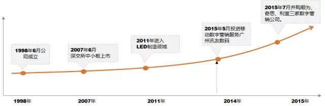 12月28日,麥達(dá)數(shù)字集團(tuán)戰(zhàn)略發(fā)布會(huì)舉行,據(jù)悉,公司自98年成立;07登陸深圳中小板,是當(dāng)時(shí)該業(yè)務(wù)類型第一家登錄中小板的公司;2011年,進(jìn)軍LED照明領(lǐng)域;2014年,趁著互聯(lián)網(wǎng)環(huán)境的變化,毅然轉(zhuǎn)型進(jìn)入互聯(lián)網(wǎng)行業(yè)。第一步,在2015年參股訊友數(shù)碼;7月以后,牽手3家互聯(lián)網(wǎng)數(shù)字營(yíng)銷公司:順為、奇思、利宣。