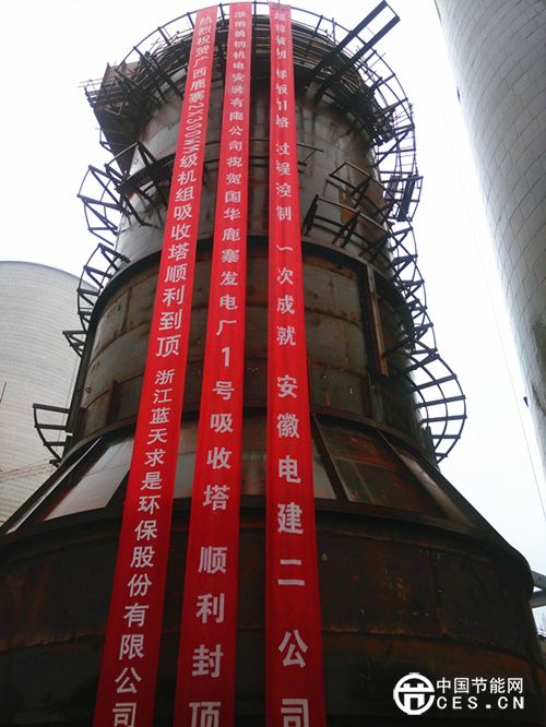 廣西鹿寨2×300MW機(jī)組#1吸收塔順利到頂
