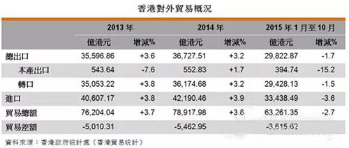 傳統(tǒng)市場方面,2015年1月至10月,香港對歐盟及日本的出口下跌,而對美國的出口則因該國基本因素穩(wěn)健而持續(xù)上升。新興市場方面,雖然對一些地區(qū)的出口錄得增長,但整體上香港的出口表現(xiàn)仍在轉(zhuǎn)弱,特別是對亞洲發(fā)展中國家的出口。