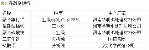 混凝是控制配水管網(wǎng)腐蝕的重要環(huán)節(jié)之一[6]?;炷Ч暮脡闹苯佑绊懞罄m(xù)工藝的運(yùn)行工況、出水水質(zhì)以及處理成本[7]。傳統(tǒng)的再生水處理工藝常用的無(wú)機(jī)混凝劑以鋁鹽、鐵鹽為主。實(shí)驗(yàn)對(duì)聚合氯化鋁(PAC)、聚硅酸鋁鐵(PSAF)、聚合硫酸鐵(SPFS)、三氯化鐵(FeCl3)、硫酸鋁[Al2(SO4)3]進(jìn)行了篩選,選擇最佳混凝劑及最佳投加量?;炷齽┮?guī)格如表2所示。