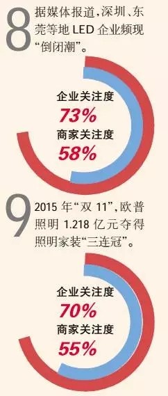 此外,2015年,照明燈飾行業(yè)進入“快速淘汰期”以及新一輪的“洗牌排序期”。對于LED照明燈飾行業(yè)而言,兼并收購、跑路、高管地震、董事辭職等事件層出不窮,有很多企業(yè)“疲態(tài)盡顯”后默默退出,然而亦有一些企業(yè)毅然堅守,它們堅信,撥開層層迷霧后終究會迎來勝利的曙光。