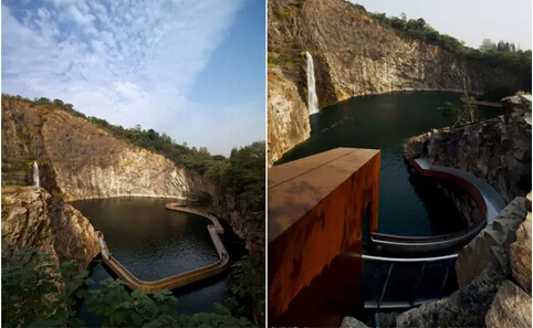 該設計重新建造了生態(tài)景觀,并沒有隱藏該區(qū)域的歷史。這些材料配置喚起了自然和工業(yè)歷史,利用生銹剛和混凝土以及石頭和植被引導游客到達礦坑盆地。
