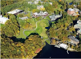 一個13.5公頃的校園區(qū)被改造成一個美麗且植被繁茂的山谷,各種區(qū)域結合起來形成了組合景觀。該地區(qū)的環(huán)境問題是最大隱患,滿是油漆、石油以及煤焦油。凈化之后,大學開始了七年時間的建造,把停車場轉變成一個傾斜、植被繁茂的山谷。