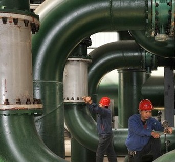 核心提示:10月24日,河北石家莊循環(huán)化工基地周邊工業(yè)余熱熱泵供暖項(xiàng)目一期工程施工現(xiàn)場(chǎng),技術(shù)人員正在調(diào)試換熱機(jī)組。