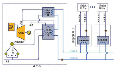 可見,火力發(fā)電廠的冷凝熱損失造成了火電廠熱力系統(tǒng)巨大的能源損失,吸收式熱泵技術(shù)將汽輪機(jī)冷凝余熱回收用于市政供熱,在能源緊缺、環(huán)境惡化的今天具有重要的意義。