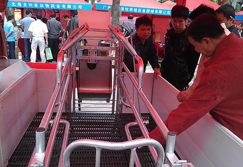 進入冬季后,氣候轉(zhuǎn)涼,如何才能讓養(yǎng)殖的生豬“舒服過冬,喂養(yǎng)科學,同時又能增強抵抗力”?11月9日,2011廣西生豬產(chǎn)業(yè)發(fā)展大會暨豬業(yè)科技物資展覽會在南寧舉行。來自北京、上海、廣東、海南、四川、湖南等15個省、市、區(qū)及海外的業(yè)內(nèi)同行約600余人參加了本次展會。區(qū)內(nèi)外近70家企業(yè)搭設展位演示最新的養(yǎng)豬設備和產(chǎn)品,現(xiàn)場不少養(yǎng)殖戶對可調(diào)節(jié)式母豬“分娩床”頗感興趣,同時,一些節(jié)能環(huán)保型禽畜取暖機和養(yǎng)殖場內(nèi)大型消毒、加濕噴霧器等應季設備成了展會上的“寵兒”。