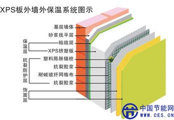 1、 外墻外保溫系統(tǒng):發(fā)泡型聚苯乙烯板(或擠出型聚苯乙烯板)+耐堿玻纖網(wǎng)布+含有膠粘劑的聚合物砂漿,如專威特外墻外保溫系統(tǒng),北京中建院外墻外保溫系統(tǒng),Preswitt保溫系統(tǒng)等;