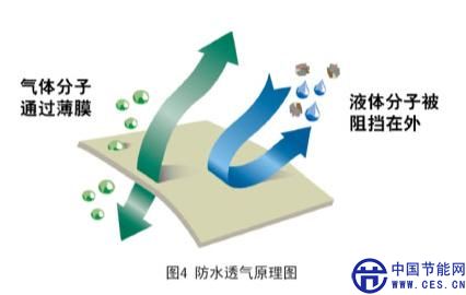 二、防水透氣膜工作原理 透汽原理可分為微孔和親水基團(tuán)兩種,蒲微-防水透氣膜則是采用前者,由于水滴的最小直徑與水汽的直徑存在著巨大差異,水蒸汽可藉擴(kuò)散原理通過(guò)微孔膜,液態(tài)水或水滴因其表面張力的作用,使水分子無(wú)法通過(guò),也就防止了水的滲透發(fā)生,使透氣膜有了防水的功能。