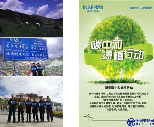 櫻雪集團(tuán)的綠色夢想不僅著眼于自身擁有的綠色產(chǎn)品,同時也著眼于社會的綠色公益事業(yè)。不僅是最初的櫻雪與上海環(huán)境能源交易所成功簽署協(xié)議購買碳排放量,自愿實(shí)施企業(yè)的碳減排;還有之前櫻雪電器推出的“低碳生活,我先行!——櫻雪低碳綠色科技社區(qū)行”活動,在全國1000多個社區(qū)開展;再到櫻雪電器與廣東警官學(xué)院R6自行車攜手,用騎行的方式為期一個月穿越川藏;甚至是延續(xù)至今的“櫻雪碳中和綠植行動”……