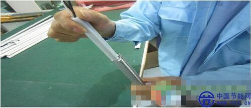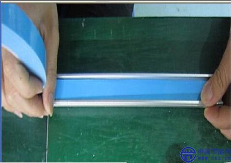 7.把鋁基板在貼有雙面膠的鋁管的一頭(間隙2mm)開(kāi)始慢慢的邊