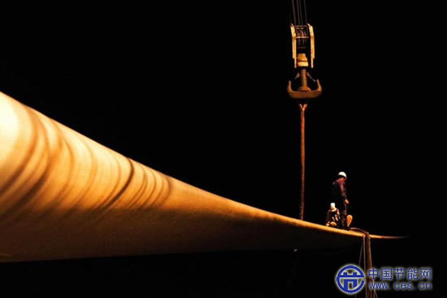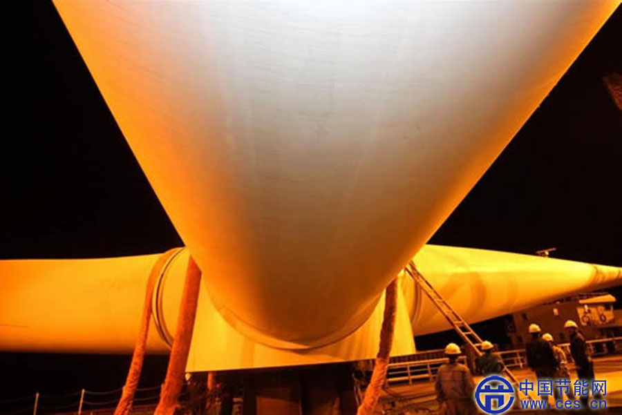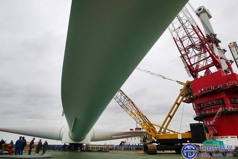 10月18日,大型海上風(fēng)電葉片吊裝就位。