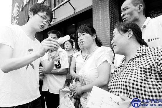 日前,含山縣供電公司的青年志愿者走上街頭向人們宣傳節(jié)能環(huán)保知識,推廣使用節(jié)能燈,倡導(dǎo)低碳環(huán)保的生活方式。(程千俊 李昌兵 攝)
