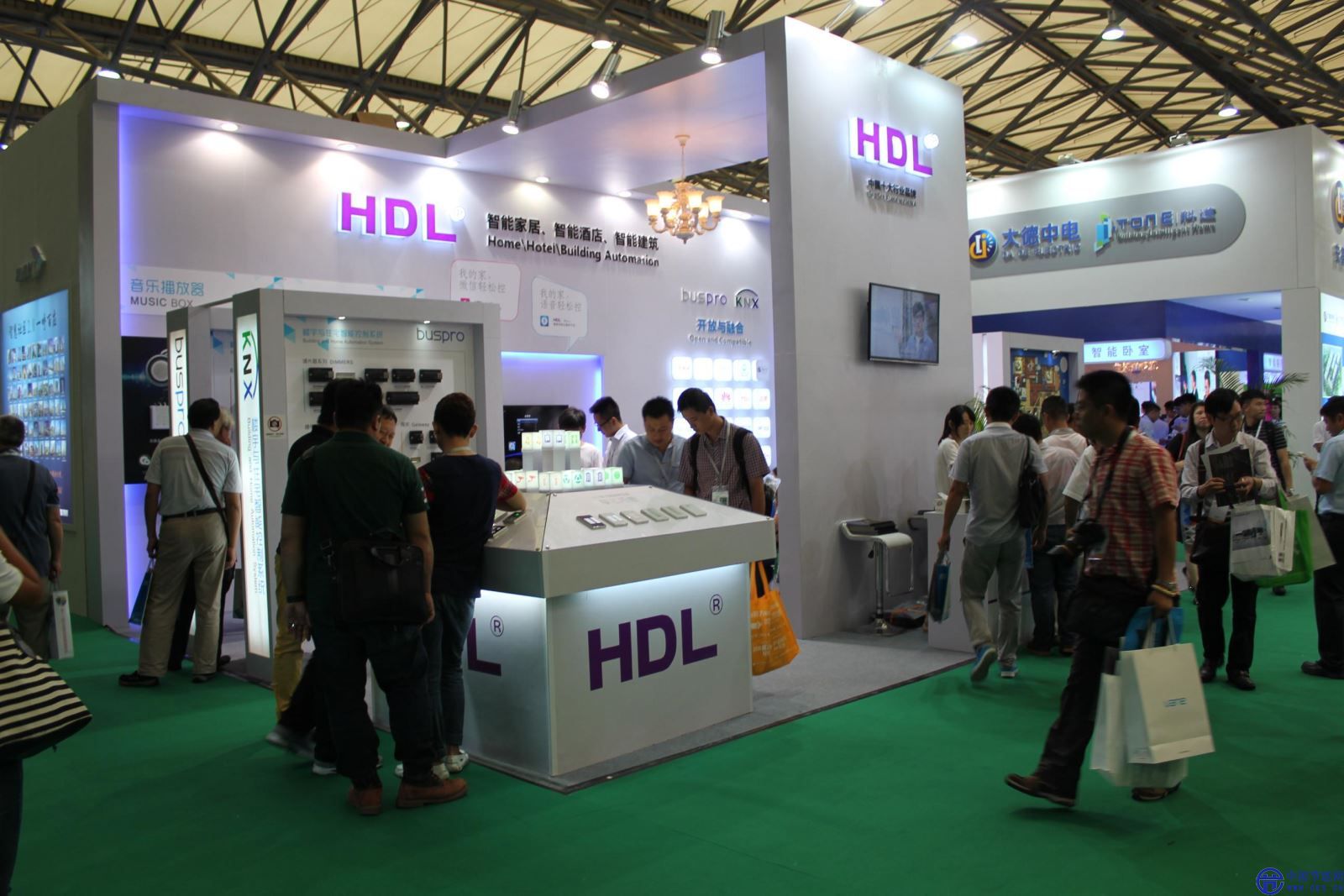 2014年9月3日-5日,第八屆上海國際智能建筑展在上海新國際博覽中心舉行,本屆上海國際智能建筑展配合建筑行業(yè)的發(fā)展趨勢,圍繞“建筑節(jié)能、智慧城市、智能家居”三大主題。廣州市河?xùn)|電子(HDL)有限公司攜帶最新面板、模塊登場,并在現(xiàn)場演示了智能酒店解決方案與智能家居解決方案,實(shí)現(xiàn)面板、語音、微信等多終端控制,吸引了眾多訪客的圍觀、交流。