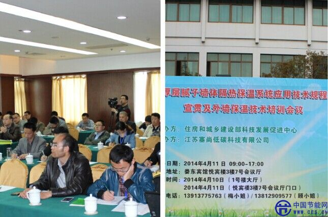 2014年4月11日,由住房和城鄉(xiāng)建設(shè)部科技發(fā)展促進(jìn)中心主辦,江蘇塞尚低碳科技有限公司協(xié)辦的“關(guān)于《厚層膩?zhàn)訅w隔熱保溫系統(tǒng)應(yīng)用技術(shù)規(guī)程》(以下簡(jiǎn)稱《規(guī)程》)宣貫及外墻保溫技術(shù)培訓(xùn)”會(huì)議在江蘇太倉(cāng)正式召開!